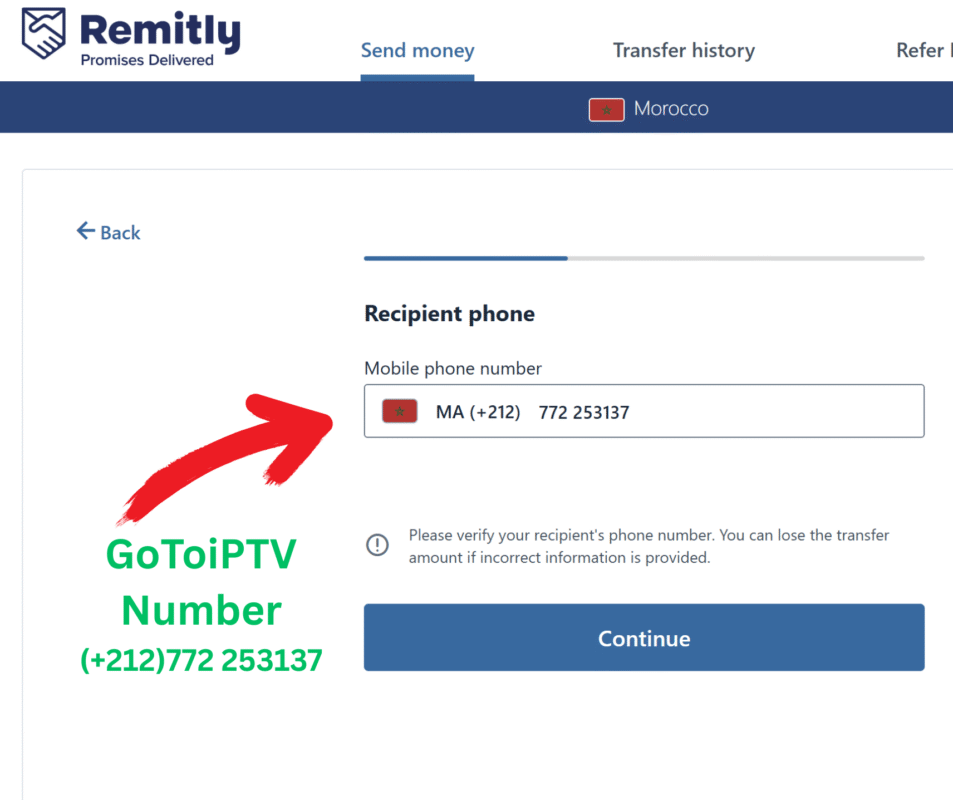 You can use Remitly to buy IPTV subscription from countries including the US, UK, Canada, Australia, and more. Just make sure to choose Morocco as the receiving country, since our international payment service provider is based there.